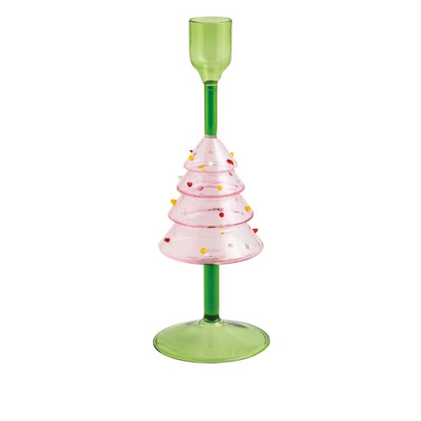 Elevate your holiday décor with this exquisite Glass Christmas Tree Taper Holder. Crafted from high-quality tinted glass, this elegant piece features an integrated figural icon that adds a touch of sophistication to any setting. Measuring 7 3/4" in height and 2 3/4" in width, it is the perfect size to complement your festive table or mantelpiece. The delicate design captures the essence of the season, making it a charming addition to your Christmas decorations. Ideal for holding taper candles, this holder creates a warm and inviting ambiance, enhancing the beauty of your home during the holidays. Whether used as a centerpiece or as part of a larger display, this glass taper holder is sure to impress your guests and bring a festive glow to your celebrations.