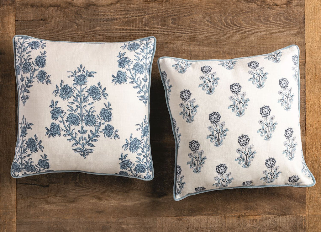 Enhance your living space with the exquisite Repeat Block Print Pattern Pillow, a perfect blend of traditional craftsmanship and modern design. This pillow showcases a stunning block print pattern on high-quality cotton, adding a touch of elegance and sophistication to any room. The velvet piped edge provides a luxurious finish, while the chambray backing offers a subtle contrast, enhancing the overall aesthetic appeal. Designed for both style and functionality, the pillow features a convenient zipper closure, ensuring easy removal and cleaning. Crafted with a 100% cotton shell for a soft, breathable feel and a 100% polypropylene lining for durability, this pillow is an ideal choice for those seeking comfort and style. Transform your home decor with this versatile and timeless piece, perfect for sofas, beds, or accent chairs.