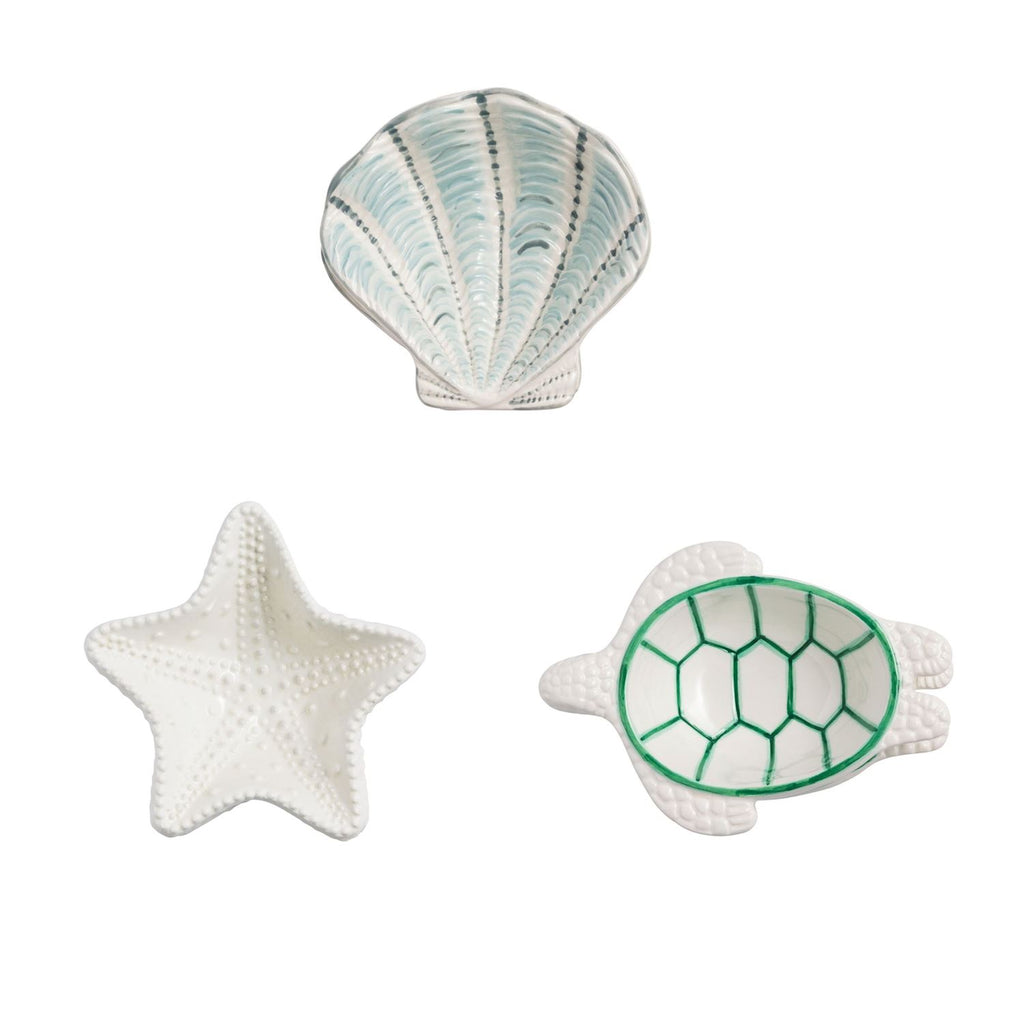Seashell Tidbit Bowl features exquisite hand-painted stoneware bowl, each designed with a unique figural seashell shape that adds a touch of coastal charm to any setting. Crafted with in-mold texture, these bowls offer a tactile experience that enhances their visual appeal. Made from high-quality dolomite, they ensure durability and longevity, making them perfect for serving snacks, appetizers, or small treats. Their elegant design and versatile functionality make them an ideal addition to any dining table or kitchen decor, perfect for entertaining guests or enjoying a quiet evening at home.